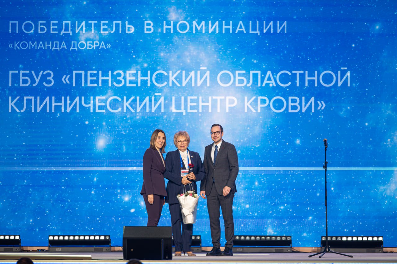 Кроме того на прошедшей неделе в Музее Победы на Поклонной горе прошла церемония награждения финалистов Всероссийской акции «Код донора. Защитники Отечества». Пензенский областной клинический центр крови представил четыре проекта, два из которых стали победителями. Проект «Защитим будущее — станем донорами» победил в номинации «Наследники Победы», а проект «Связующая нить поколений» — в номинации «Связь поколений. В кадре донорство». Эти достижения подчеркивают важность и эффективность работы Центра крови в области пропаганды донорства крови.