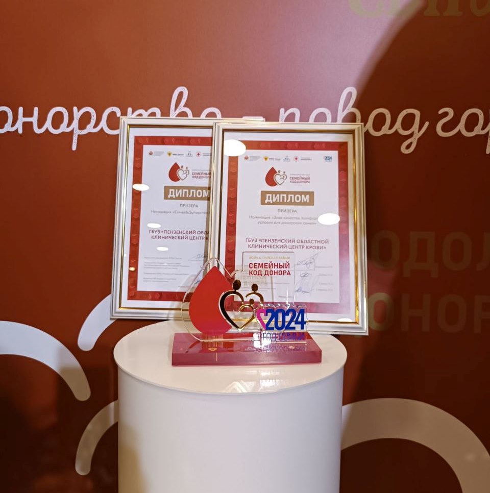 Мероприятия, посвященные подведению итогов Всероссийской акции - конкурса "Семейный код донора", состоялись 27-28 ноября в Москве. Инициатором акции выступил Национальный фонд развития здравоохранения, к инициативе которого присоединились Координационный совет при ОП РФ по донорству крови и костного мозга, Федеральное медико-биологическое агентство и Общероссийская общественная организация «Российский Красный Крест. Заключительные мероприятия включали проведение Всероссийской конференции «Донорство крови и костного мозга в Российской Федерации. Успешные практики в Год семьи», Пресс-конференцию по итогам Всероссийской акции «Семейный код донора» и Торжественную церемонию награждения победителей и призеров Всероссийской акции. Пензенский областной клинический центр крови принимал активное участие в Конкурсе, в рамках которого состоялись различные активности с участием пензенских доноров и донорских династий. «Акция «Семейный код донора» – это проект про благородство и милосердие доноров, которые оказывают помощь и поддержку больным людям», отметила главный врач Пензенского областного клинического центра крови Татьяна Крылова. Пензенские работы, оформленные по результатам мероприятий и представленные на Всероссийский смотр, получили высокую оценку компетентного жюри. В номинации «Семья и донорство в фокусе» работа «Дарующие жизнь» и в номинации «Знак качества. Комфортные условия для донорских семей» проект «Сохраняя традиции, работаем на будущее» стали призерами среди более чем 250 заявок, присланных на Конкурс из 69 регионов России , а также из Беларуси и Казахстана.